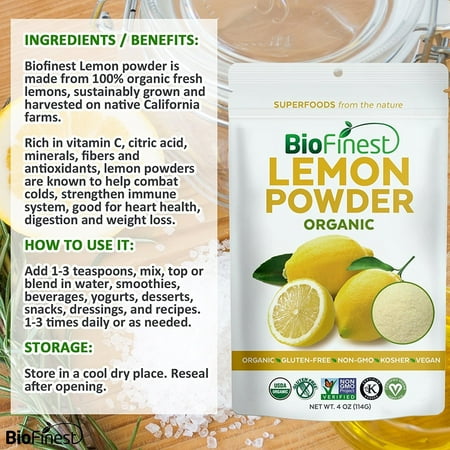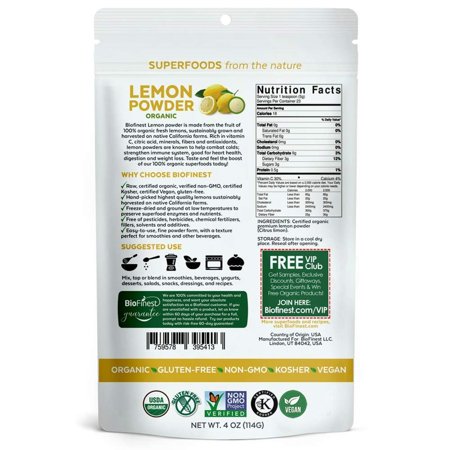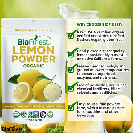 Orignal From: Biofinest Lemon Powder - 100% Pure Antioxidant Superfood - USDA Certified Organic Cleansing Veggie Original Non-GMO - Promotes Digestive Weight Loss - Fresh Fruits for Smoothie Drink (4 oz Resealable Bag)