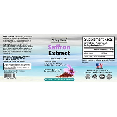 • Increase your weight. With our unique 88.25 mg formula, our pure saffron extract is a powerful solution that suppresses appetite, does not contain caffeine, stimulants, nervousness or headaches. It is no longer a snack or an emotional diet late at night. Create less hunger, promote weight loss, promote more energy and a better mood. • Reduce and lighten weight or refund your money! - If you don't see the results [or are not completely satisfied for any reason] you can take back all the money by suppressing the desire to eat snacks late at night or by controlling your sugar intake! • A smarter way to lose weight - we all compete for cravings when dining or between meals. Having our 100% pure saffron extract is your chance to beat these cravings! Losing weight and health begins with your diet and is back on track! • The best natural appetite suppressant for weight loss - the maximum intensity of each capsule is 88 mg. Pure saffron extract helps reduce hunger and thus lose weight. • Optimized saffron capsules are a proprietary saffron extract for clinical research. You know that saffron is a spice. What you may not know is that since ancient Persia, it has been cherished by traditional culture to enhance emotions and relieve stress. This standardized saffron extract was previously only available in Europe, and by providing support for some emotional factors, these factors allow you to eat more when you try to eat less.