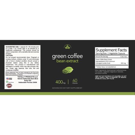 Orignal From: Totally Products Maximum Strength Green Coffee Bean Extract 400mg - 2 Bottles X 60 Capsules