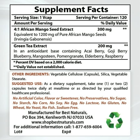 Best Naturals African Mango 500 mg 120 VCaps