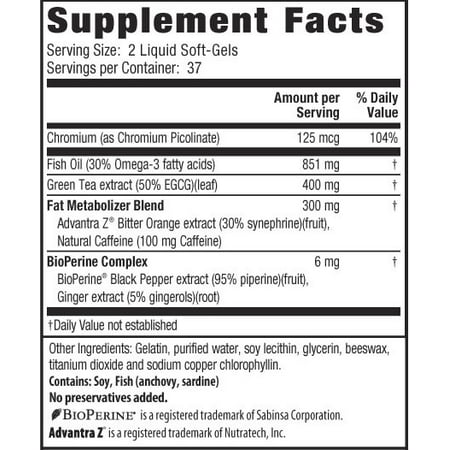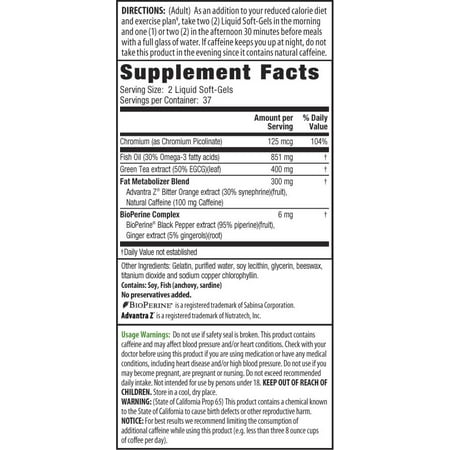 Increased calorie burn: This formula contains patented Advantra Z. Emerging research suggests it has the potential to increase calorie burning and increase metabolism. Promote energy: EGCG and caffeine have properties that enhance metabolism and help burn calories. The heat production of green tea extract combines natural caffeine, while not actually "melting fat" helps to oxidize fat and increase energy consumption. Support for metabolism: Chromium picolinate is part of this formula and is an essential nutrient for fat, sugar and carbohydrate metabolism. Green tea fat metabolism products maximize powerful heat production in fast-acting liquid soft gels. For best results, combine a low-calorie diet and exercise program.
