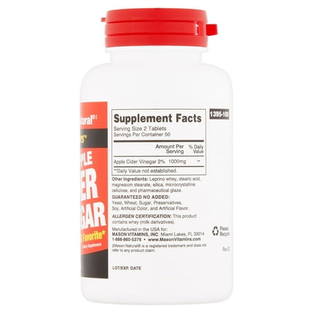 Orignal From: Mason Natural BodyShapers Super Strength Apple Cider Vinegar Tablets, 100 Count