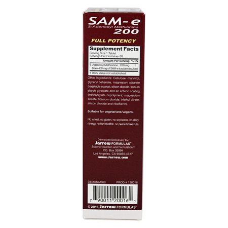 Orignal From: Jarrow Formulas SAM-e, which promotes joint strength, mood and brain function, 200 mg, 60 enteric coated labels