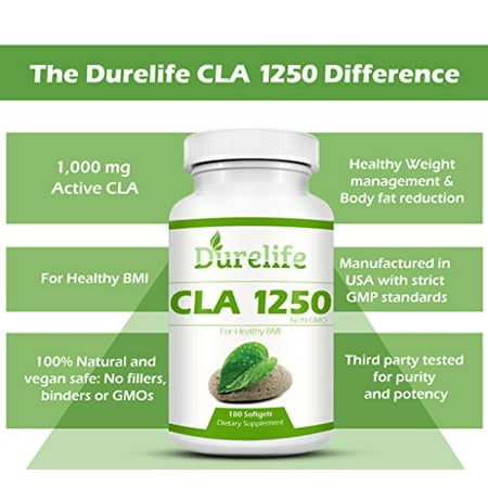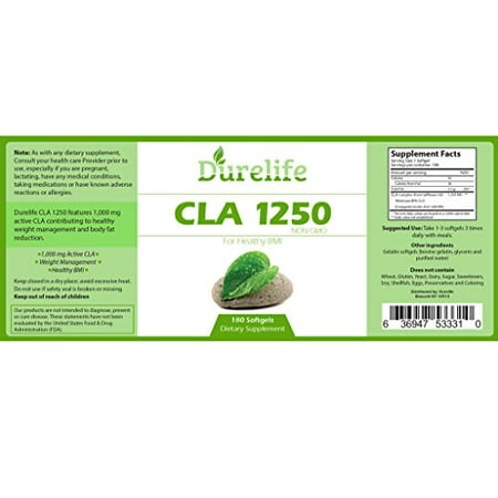 CLA 1250 Mg 180 counts 80% conjugated linoleic acid, DureLife CLA 1,250 is a dietary supplement for weight management