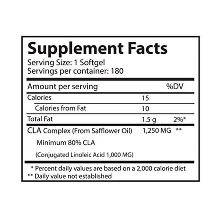 Orignal From: CLA 1250 Mg 180 Ct 80% Conjugated Linoleic Acid, DureLife CLA 1,250 is a Weight Control Dietary Supplement